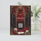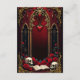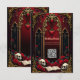 Amor eterno en las sombras de la oscuridad, en estilo gótico. El punto focal es una majestuosa arcada gótica decorada con delicados detalles dorados y brillando sobre un fondo rojo profundo. Las dos elegantes columnas que rodean la arcada le dan un toque sublime al diseño y resaltan el diseño opulento. El corazón colgando suavemente de la arcada dibuja el ojo y está enmarcado por un efecto sanguíneo goteo,