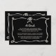 Esta moda y elegante carta de detalles e información sobre los invitados a las bodas incluyen un marco dibujado a mano, con una ondulación ilustrada con un arco, y un elegante guión escrito a mano para un estilo boda de estilo parisino o francés. Esta opción de color clásico es negro oscuro y marfil y también incluye un código QR escaneado para su sitio web boda.