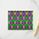 joyas, fondo del Mardi Gras de rhombus violeta y verde, lirios dorados decorados.