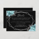 Tarjeta De Recepción Aqua Floral Silver Black Wedding Details
