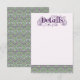 An elaborately detailed light purple Art Nouveau details card bordered by a pattern of lilac lovebirds and lavender butterflies in profile perched atop scrolling vines of purple thistle on a light green and cream dotted background. The decorative floral announcement text color can be changed in the editing panel to meet your needs.