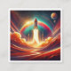 diseño de arte surrealista con colores vibrantes, que representa un lanzamiento de cohete al espacio. Perfecto para inspirar una sensación de asombro y exploración, este diseño combina el surrealismo audaz con elementos cósmicos imaginativos para crear una visión cautivadora y de ensueño.