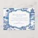 Podrá guiar a sus huéspedes sin problemas desde la ceremonia hasta la celebración con esta elegante tarjeta de recepción azul chinoiserie. Con intemporales obras de arte en toile con pagodas y detalles florales, este prospecto proporciona información clara sobre la cena y el baile. Ideal para bodas clásicos, de jardín o de la costa, combina perfectamente con las invitaciones y tarjetas RSVP para una refinada suite boda chinoiserie.