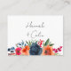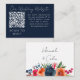 Elementos: flores y vegetación acuarela vibrante con nombres en un estilo moderno y divertido de escritura a mano. Colores: Azul, azul marino, azul polvoriento, naranja, terracota, siena quemada, rojo, carmesí, verde. Temas: botánico, elegante, chic, moderno, romántico, informal, jardín, otoño, primavera, verano, al aire libre. Colección: Colección de Bodas Botánicas de Azul Naranja Rojo Vibrante. Tipo de producto: Tarjeta de RSVP de Código QR de Sitio Web de Bodas