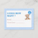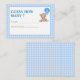 "Agrega algo de diversión a tu ducha de bebé con esta tarjeta azul "Podemos esperar temprano" Adivina cuántas cartas de juego. Con un oso de peluche dulce y un suave diseño de gingham azul, este juego lúdico invita a sus huéspedes a adivinar el número de objetos en un frasco. ¡Una manera encantadora e interactiva de celebrar la próxima llegada de tu pequeño!"