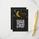 Bajo las estrellas, eventos de quinceañera. Fondo del cielo negro nocturno con luna dorada y estrellas