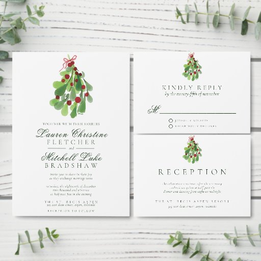 Tarjeta De Recepción Bajo los Navidades Información de invitado Mistlet