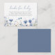 Haga un deseo especial de lectura para su bebé con esta adorable tarjeta de solicitud de libro Blue Baby In Bloom Wildflower. Esta belleza floral llama la atención con flores silvestres exuberantes en suaves tonos azules. Perfecto para las duchas de bebé, permite a los clientes seleccionar libros para regalar la biblioteca de bebés. Es un regalo conmovedor que sigue dando a través de la alegría de la lectura. Esta tarjeta especial de solicitud de libros es una alternativa única a una ducha de bebé con tema de libro que promueve la alfabetización y la lectura. ¡Vigila a mamá y a su bebé atados mientras lee libros regalados a su barriga!