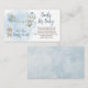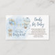 Cute diseño de Baby Shower "Books for Baby" que incluye un oso de peluche con una corbata azul colgando de un montón de globos en un lado con un globo de aire que lleva un ramo de flores en el lado derecho. Banderas de conejo cuelgan entre los dos globos. Nubes y estrellas sobre un fondo de color azul acuático rodean el diseño. Diseño compuesto por Holiday Hearts Designs.