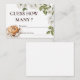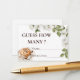 El "Rustic Baby is Brewing Coffee Adivinen Cuántos Gabinetes Card" presenta un diseño encantador con un ilustracion de taza de café en la parte inferior izquierda y delicadas flores blancas en la parte superior. Los huéspedes podrán adivinar la cantidad de granos de café u otros productos pequeños que se encuentran en un frasco, añadiendo una actividad divertida e interactiva a la ducha para bebés.