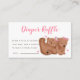 Con dos gemelos, el chica de la ducha de bebé tiene un boleto de rifa de pañal con ilustracion pintado a mano de un oso de cachorro con corazones y arcos rosados. La tarjeta pide a los invitados que traigan un paquete de pañales para tener la oportunidad de ganar un premio especial.