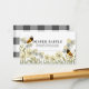 Esta tierna tarjeta de cercado de boleto de rifa de pañales con tema de picnic para la ducha de bebé tiene un fondo blanco con abejas de burbujas/miel y flores. El reverso presenta un fondo blanco con patrones de comprobación de búfalo/gingham negros. Personalízalo para tus necesidades. Puedes encontrar productos coincidentes en mi tienda.