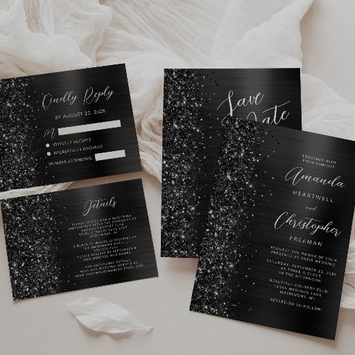 Glam Brushed Metal Glitter Black Wedding SuiteDiseñado por Akhates Designs