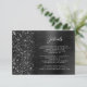 This elegant modern wedding details enclosure card features a black brushed metal background image sprinkled with faux diamond glitter. Customize the white text, with the title "Details" in stylish handwriting script and the remaining text in sans serif font. The reverse side features a matching black brushed metal and faux glitter design.