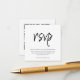 ¿Buscas la tarjeta de respuesta de boda perfecta? ¡No busques más! Nuestra tarjeta de respuesta de boda moderna y personalizable presenta una tipografía de escritura negra elegante que seguramente impresionará a tus invitados. Con un fondo blanco limpio, puedes incluir fácilmente tu propio texto personalizado para hacerlo verdaderamente único. En el reverso, crea un nuevo código QR que enlace directamente a tu sitio web de boda para un acceso fácil y conveniente. Ve a la opción "personalizar", agrega la URL de tu sitio web de boda en el área proporcionada, y un código QR se generará en el diseño solo para ti. ¡Ordena ahora y deja que las respuestas comiencen a llegar!