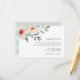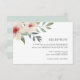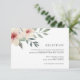 Elegante tarjeta de recepción floral de boda en tonos suaves rosa, melocotón y verde sabio, con un ramo de flores de melocotón en la esquina superior izquierda, con detalles de recepción con letras clásicas de color negro. Personalice los detalles de la recepción de su boda, incluyendo el momento, el lugar, la dirección y cualquier información adicional como el transporte o el aparcamiento.