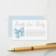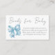 Esta encantadora tarjeta de ducha de bebé con arco azul cuenta con "Books for Baby" en la parte superior con elegantes letras en forma de guion, con un suave arco de color azul a la izquierda. El mensaje que se muestra a continuación es de tipo clásico, y anima a los clientes a llevar un libro de bebés en lugar de una tarjeta de felicitación. La tarjeta tiene un aspecto clásico sencillo y minimalista con fuentes grises y un fondo azul claro, aunque se pueden personalizar los colores para que coincidan con el tema. Incluya esta tarjeta con sus invitaciones para informarle a los huéspedes sobre la solicitud especial. Perfecto para celebrar a un bebé, este toque reflexivo también funciona como una opción neutral de género y es ideal para cualquier época del año. Dulce Script acuarela Blue Bow Baby Shower Theme Books para Tarjeta de Alojamiento para Invitación al Bebé.