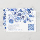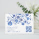 Tarjeta De Recepción Blue Floral Wedding RSVP QR Code response Card