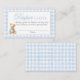 Tarjeta De Recepción Blue Gingham Bear Baby shower Diaper Raffle Card