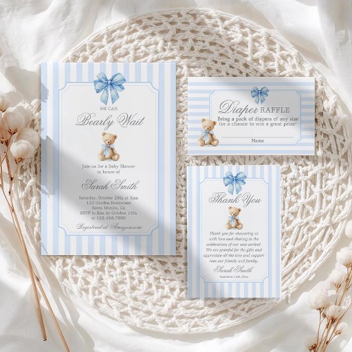 Tarjeta De Recepción Blue Stripes Bear Baby Shower Boy Books for Baby