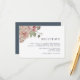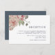 Elegante tarjeta de recepción floral que coincide con nuestras invitaciones de boda y evento Blush Rose, y cuenta con un ramo de rosas y peonías de acuarela en tonos suaves de rosa sonrosado y verde salvia. Personalice con la información de su recepción de boda, incluyendo horario, lugar y cualquier información adicional como estacionamiento o transporte.