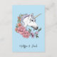 Tarjeta De Recepción Boda azul de las flores rosadas de unicornio blanc