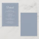 Tarjeta de gabinete boda azul polvoriento de estilo tradicional con un diseño sencillo con "Detalles" en una caligrafía elegante dentro de un borde delgado. La plantilla le permite compartir información importante sobre su día especial. Este diseño clásico es perfecto para un boda formal.