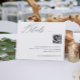 Esta sencilla y moderna tarjeta de detalles de bodas caligráficos se realiza en blanco y negro. Tiene un código qr en la parte inferior para que sus huéspedes puedan escanear su sitio web.