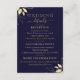 Tarjeta De Recepción Boda botánico moderno de la flota azul y oro
