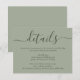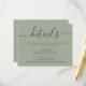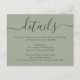 Proporcione a sus invitados detalles importantes con esta elegante tarjeta de inclusión de boda verde sage moderna con una fuente de guion moderna. Artículos coincidentes disponibles.