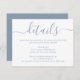 Proporcione a sus invitados los detalles importantes con esta elegante tarjeta de inclusión de boda de azul polvoriento moderno con una fuente de letra moderna. Artículos coincidentes disponibles.