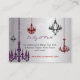 Tarjeta De Recepción Boda Damask de lámparas de araña negra púrpura y p