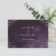 La escritura romántica florece en un rincón de caligrafía en falso color oro rosa sobre fondo morado profundo morado de color morado, elegantes y sofisticadas, grandes tarjetas de inserción boda para bodas vintage, bodas en otoño o invierno y boda nocturno. Vea todas las piezas coincidentes de la colección.