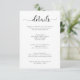 Tarjetas de detalles de Boda de caligrafía blanca y negra de flores silvestres. Con espalda negra de floral blanca