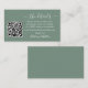 Guión moderno de caligrafía - Tarjeta de gabinete de sitio web Minimalista para detalles de Boda simple con su código QR. Sage Green