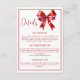 Aumente su papelería boda con esta tarjeta de gabinete Boda de cinta roja minimal de coqueta roja, con un diseño elegante y elegante que equilibra perfectamente la funcionalidad con el estilo. El motivo de la proa roja y la cinta de moda añade un toque moderno, por lo que es ideal para bodas con temas rojos y blancos, ambientes formales o celebraciones románticas. Esta tarjeta de gabinete es perfecta para compartir detalles importantes como información RSVP, direcciones, alojamiento u otras instrucciones especiales. Su diseño minimalista combina a la perfección con otros diseños bodas en el estilo del arco rojo o de la cinta roja, creando una suite boda pulida y cohesionada que complementa la temática general. Ya sea que esté planeando una celebración moderna, un boda atemporal rojo y blanco, o un evento formal de lujo, esta tarjeta de recinto es una adición práctica y elegante. La tarjeta de Boda Minimal Red Coquette Bow Ribbon garantiza a sus huéspedes toda la información que necesiten y añade un toque sofisticado a los detalles de su boda.
