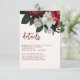 Esta elegante tarjeta de boda floral borgoña y roja presenta detalles bodas con letras modernas con flores acuarelas y follaje botánico en tonos tierra inspirados en el desierto, con color burdeos, rojo, marrón y marfil con un texto de color de cobre cálido.Una tarjeta de recinto para bodas roja crimson perfecta para otoño, verano, otoño y bodas de invierno
