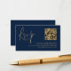 Classy Gold Script Navy Blue QR Boda de código RSVP gabinete que permite a los clientes responder escaneando el código QR que lleva a su sitio web boda. Un MINI size para adjuntar tus invitaciones. RSVP está en un elegante juego de guiones de estilo manuscrito y el resto del texto se personaliza fácilmente para el suyo en oro sobre blanco. Los colores de texto y de fondo se pueden cambiar según sea necesario mediante el botón de edición adicional. Añade tu código QR a la página de respuesta de tu sitio web boda para que tus invitados puedan ver todos los detalles sin necesidad de tarjetas de detalles ni de RSVP separadas. Simplemente cambie la dirección URL de ejemplo de la plantilla con su propia dirección URL de la página elegida de su sitio web boda y su código QR se generará automáticamente para actualizar el código de ejemplo en el diseño.