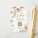 Este elegante código QR boda floral, adornado con una romántica cascada de flores de color acuático, sirve de guía a sus huéspedes. Un marco geométrico de oro moderno se entrelaza con abundantes flores de jardín pintadas a mano, que incluyen peonías blandas de rubor, rosas de color rojizo, delicados ranunculus de marfil, flores de melocotón, flores silvestres y vegetación fresca. La decoración floral le aporta calidez y encanto, convirtiendo esta tarjeta en una incorporación impresionante a su suite de boda de papelería. Perfecto para ceremonias rústicas en el campo, celebraciones de boho-moda en el jardín o románticos bodas florales, esta tarjeta ofrece espacio para su código QR boda personalizado que enlaza a su sitio web boda, formulario RSVP o detalles del evento. Características: Exquisita cortina floral acuarela con tonos suaves y románticos Incluye campos editables para nombres, código QR e información de boda Perfecto para la inclusión en suites invitadas, bolsas de bienvenida o favores matrimoniales Ideal para flores, rústicos, jardín, viñedos o boho bodas Coordenadas con otros artículos de nuestra elegante colección de Bodas Florales Permita que la elegancia floral florezca a lo largo de su día de boda con este sin tiempo y sin tecnología vy insertar tarjeta.
