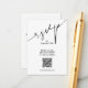 Estas modernas tarjetas de alojamiento en blanco y negro son una forma sencilla de que los huéspedes puedan acceder a RSVP en su página web. Para crear su propio sitio web, QR Code, simplemente introduzca su URL en el cuadro de texto cuando personalize sus tarjetas. **El servicio de diseño en vivo puede ayudarle con el diseño de su diseño o colores si es necesario.