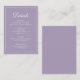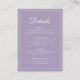 Tarjeta de gabinete boda púrpura y lavanda de estilo tradicional con un diseño sencillo con "Detalles" en una caligrafía elegante dentro de un borde delgado. La plantilla le permite compartir información importante sobre su día especial. Este diseño clásico es perfecto para un boda formal.