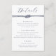 Haz que tu boda sea digno de navegar con esta tarjeta de detalles de boda náutico de JessicaAmber. Esta tarjeta de gabinete formal incluye un ilustracion detallado de una cuerda atada en una figura de ocho nudos. Las elegantes letras de color azul oscuro establecen el título y los detalles del boda, como la recepción, el alojamiento y el sitio web. Busque en mi colección el conjunto de invitaciones coincidentes. ・・・ Para obtener más suites bodas clásicas, visite mi tienda Zazzle.com/DriftwoodAndDreams ・・ Para órdenes de personalizados, envíeme un mensaje a Zazzle