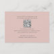 Mejore su suite boda con esta elegante tarjeta RSVP con un tema de color rosa y un toque de diseño romántico suave. La tarjeta incluye un código QR con detalles del boda, que ofrece acceso sin problemas a la plantilla de su sitio web minimalista para la respuesta en línea e información de recepción de alojamiento simple. Diseñada con un guión elegante de caligrafía y un diseño básico minimalista, esta tarjeta rebosa elegancia sofisticada, lo que la convierte en una adición perfecta a su papel boda atemporal.