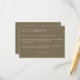 Complementa su suite de papel boda con esta tarjeta de gabinete diseñada de forma sencilla, centrada en la tipografía, diseñada para coordinar con nuestra suite de papelería boda "Modern Organic Floral Divider". ✦ ✦ ✦ personalizable completo y fácil de personalizar. Disponible en una paleta de colores cuidadosamente seleccionados, esta tarjeta se puede adaptar a su estilo boda o personal. Contacte para obtener ayuda para adaptar el diseño a sus detalles específicos de boda - texto, alineación, color personalizado, etc. - estamos aquí para ayudar a crear una suite de papel boda cohesiva que sea única para usted.