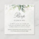 Hermoso sitio web boda QR código RSVP tarjetas de gabinete con eucalipto de color de agua y hojas de oro.