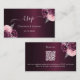 Un fondo burdeos adornado con flores borgoñas y rosas, flores con follaje de imitación de plata. Personalice y agregue sus nombres, URL del sitio web boda para su propio código QR y texto.