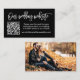 Guión de pincel moderno. Tarjeta minimalista de gabinete de sitio web simple Boda con su código QR. Blanco y negro. Foto de vuelta.