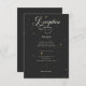 Descubre la mística de tu historia de amor con nuestra tarjeta de recepción de bodas románticas oscuras. El diseño de esta suite, con un encanto oscuro, ofrece una invitación con un gráfico oculto victoriano de un sol, luna y estrellas, bellamente intrincado y detallado. Las tarjetas de la suite son sencillas, en blanco y negro o en blanco y negro, con delicadas estrellas doradas. El diseño evoca la esencia del romance y el misterio eternos. La elegancia oscura se ve acentuada por el texto blanco cremoso de la luna. Este diseño es una mezcla artística de belleza y drama, prometiendo un tono fascinante para su día especial. Elija este diseño para crear un boda tan único e inolvidable como su amor. Creado por Simply Farmhouse Press, forma parte de la suite boda Dark Moody Victorian Moon & Sun.