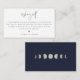 Elegante acuarela dorada de las fases de la luna, Boda Wshing Well tarjetas de gabinete con respaldo de color azul marino coordinado y acento cardíaco.