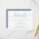 Proporcione a sus invitados con detalles importantes con esta elegante tarjeta de inclusión de boda azul polvoriento moderna con una fuente de letra moderna. Artículos coincidentes disponibles.